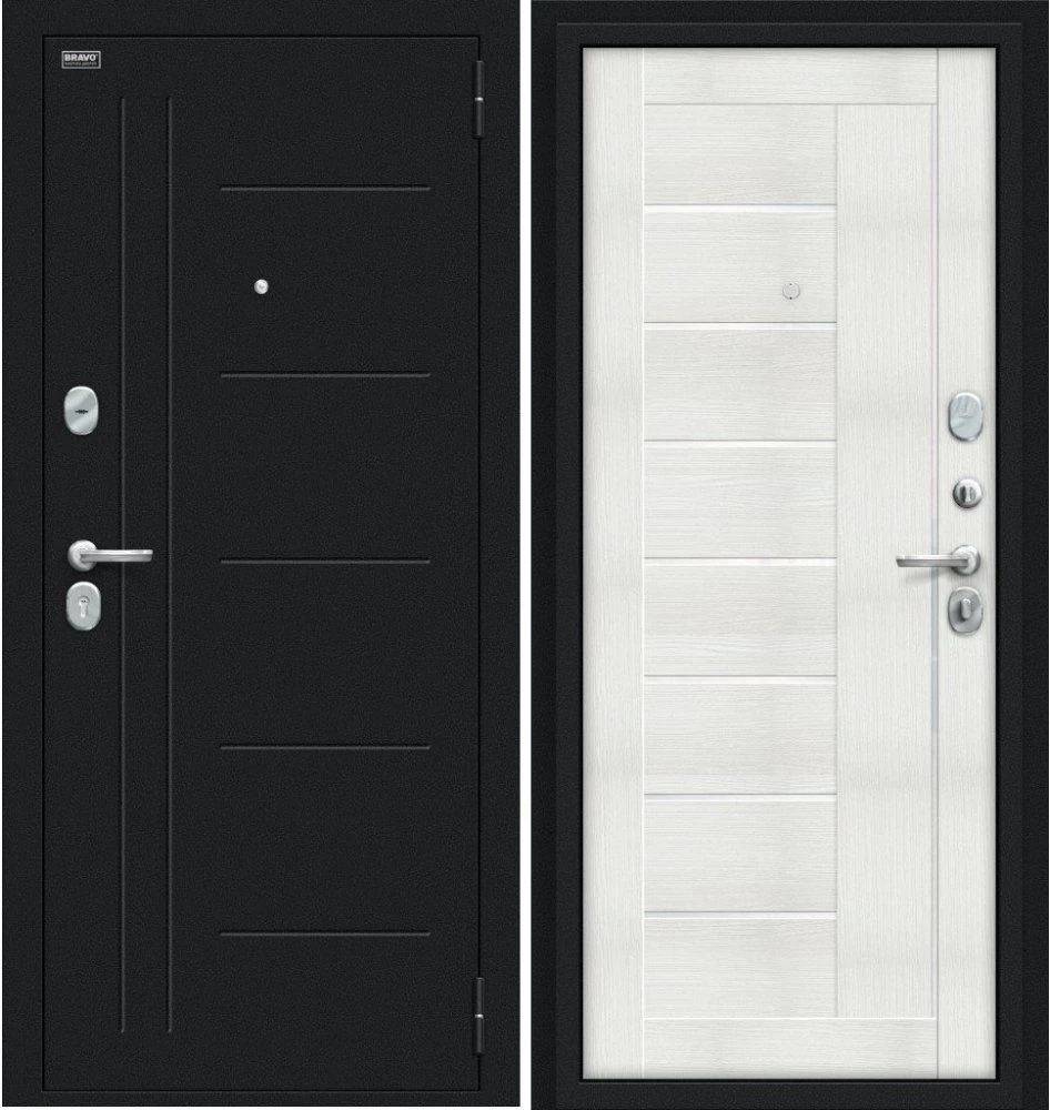 Надежная входная Дверь Браво Проф Букле черное/Bianco Veralinga премиум класса по цене 32 457 руб. Большая толщина стали защитит от проникновения в ваш дом, квартиру или коттедж. Используется очень качественная фурнитура: замки, цилиндры, ручки, защелки. Покрытие и отделка двери изготовлено под внимательным контролем производителя. Дверь имеет долгий срок службы и гарантию.