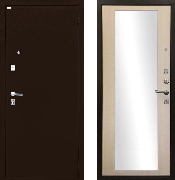 Надежная входная Дверь Ратибор Люкс Зеркало Экодуб премиум класса по цене 30 607 руб. Большая толщина стали защитит от проникновения в ваш дом, квартиру или коттедж. Используется очень качественная фурнитура: замки, цилиндры, ручки, защелки. Покрытие и отделка двери изготовлено под внимательным контролем производителя. Дверь имеет долгий срок службы и гарантию.